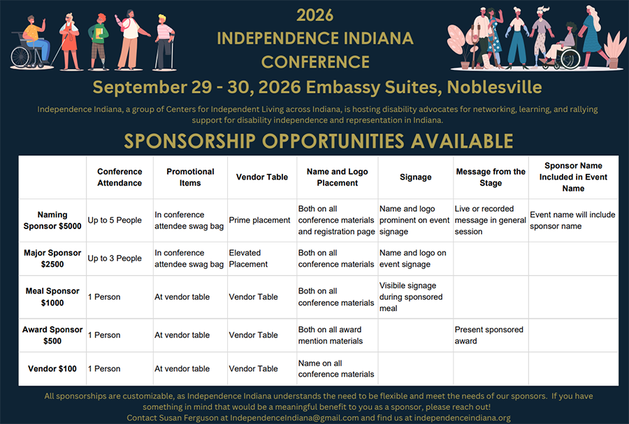 The Independence Indiana Conference brings together individuals with disabilities, advocates, professionals, and community leaders to advance inclusion, access, and opportunity. As a business sponsor, you play a vital role in supporting education, advocacy, and empowerment for all.